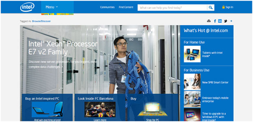 Intel is an another American multinational tech company which is considered to be one of the best semiconductor chip makers in the world. The company has an attractive yet simple logo and a website that follows the flat design approach.