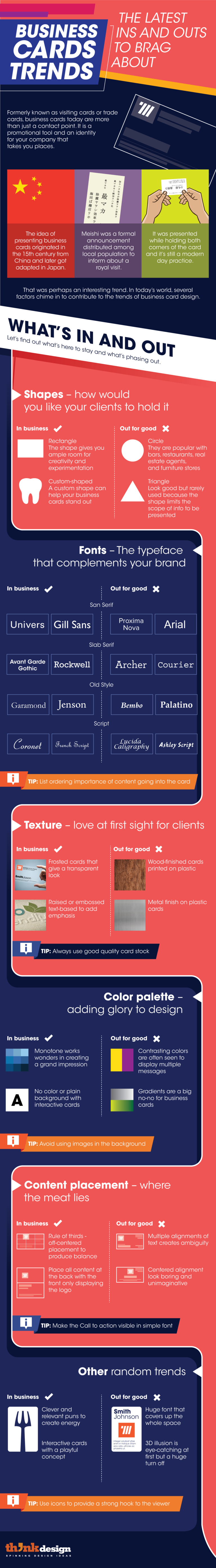 Among a sea of mundane cards with same old texture, your business card should leave your client surprised and in awe. Even with a complete recipe for a winning business card, you need an X factor to be added in design. Check out the latest trends from the world of visual marketing.