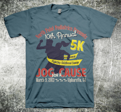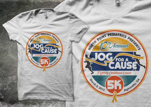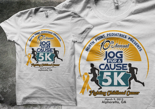 Jog for a Cause is a non profit organization that organizes an annual 5K road race. The proceeds from the race benefit individuals and organizations that are affected by or associated with children's cancer. The upcoming race will be held March 9, 2013, and this will be the 10th annual race. The design will be used both for the race t-shirt and promotional flyer, and it would be nice if the design emphacized that this is the 10th race. Please include "North Point Pediatrics Presents" and the location, "Alpharetta, GA" and you can view last year's logo and details at jogforacause.com to view last year's logo and additional information. Thank you for your work on this project!