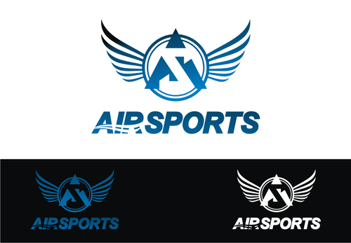 flying letters, moving bodies that make up letters, stars, very fresh and moving, letters that are wind blown "Air Sports", ideas with "A" & "S" and then Air Sports, strong & bold with flight...