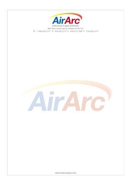 Company name is AirArc Supply Inc. Use company logo "AirArc" and subtitle, "authorized Airgas distributor"