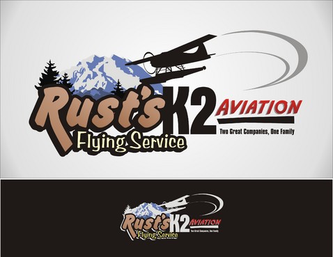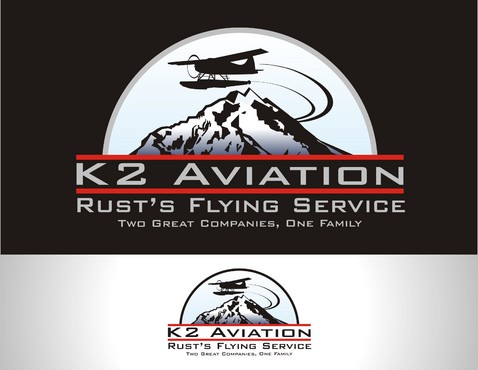 We are trying to design a combined logo for two aviation companies (K2 Aviation & Rust's Flying Service) that are owned by the same family. The two companies are keeping their individual names, but we would like people to know they are owned by the same family. So, maybe the logo does not need to include both companies name.