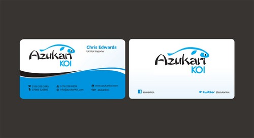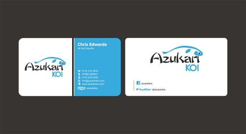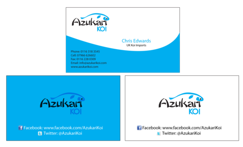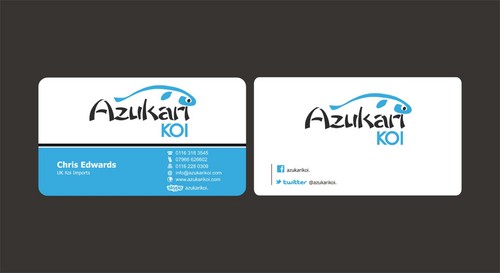 Also included on the front should be my Skype address: azukarikoi. For Facebook, Twitter and Skype I would like to see the logo of each and then my username after it.