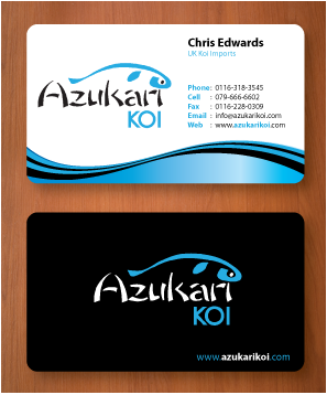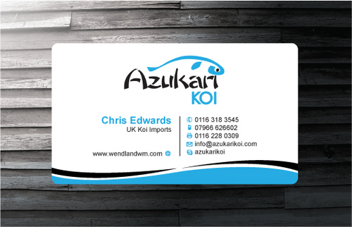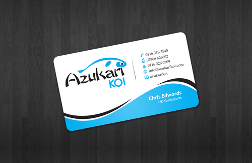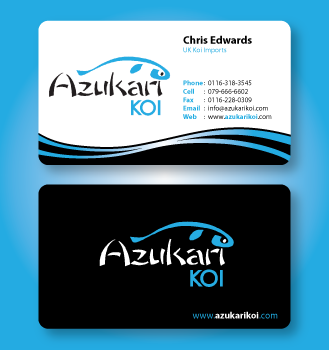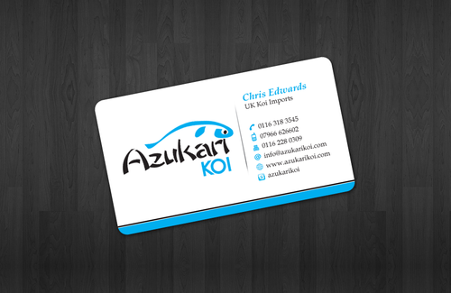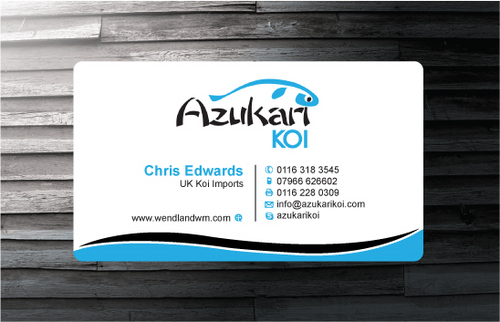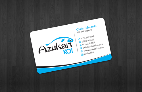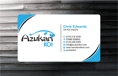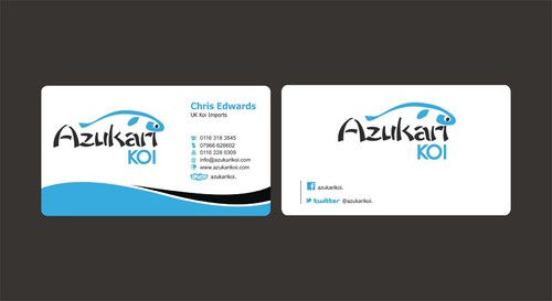 Also included on the front should be my Skype address: azukarikoi. For Facebook, Twitter and Skype I would like to see the logo of each and then my username after it.