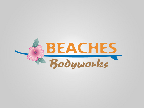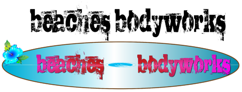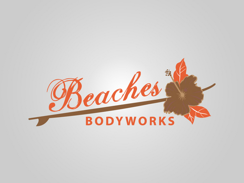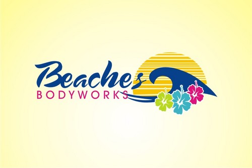 Our website is not a good indication of the designOne idea we like (but keep in mind we are open to all ideas) is a vintage longboard horizontally placed behind the word "Beaches" then "BODYWORKS" written in fine letters below the board, with some tropical flowers added in a few places to soften and feminize the look. Just an idea.