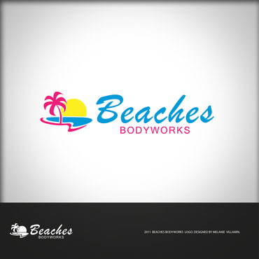 Our website is not a good indication of the designOne idea we like (but keep in mind we are open to all ideas) is a vintage longboard horizontally placed behind the word "Beaches" then "BODYWORKS" written in fine letters below the board, with some tropical flowers added in a few places to soften and feminize the look. Just an idea.