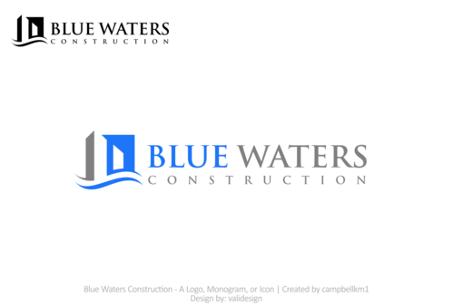 The Logo should clearly and predominately show the name "Blue Waters" with construction in a smaller text. The company provides both residential and commercial building services as well as pool construction. The logo may include images to repersent the 3 areas of the business. The logo should be very clean and unique but simple. I am looking for an original, memorable logo that is clear to read.