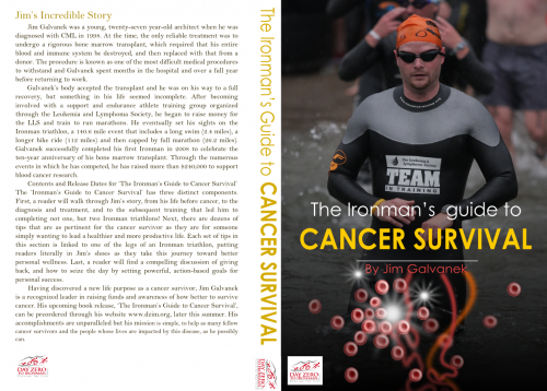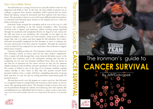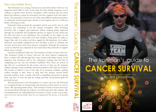 PRESS RELEASE For immediate release: Cancer Survivor Jim Galvanek Announces Release of ‘The Ironman’s Guide to Cancer Survival’ For Jim Galvanek, it all started with a heartwarming story, and became an accomplishment that had never before been achieved. WASHINGTON, DC —The first Ironman triathlete to have ever completed the event following a bone marrow transplant for CML (Chronic Myelogenous Leukemia) from an unrelated donor, announces that his new book ‘The Ironman’s Guide to Cancer Survival’ is scheduled for release later this summer. Galvanek has taken cancer survival to new heights not just through his athletic achievements, but also through his work to help other cancer survivors via his extraordinary fundraising and website, www.dzim.org. Galvanek’s defiance of the odds, by his own admission, has led him to a higher purpose in his life, and this announcement only certifies his commitment to getting his unique and powerful message out to as many people as possible, be they cancer survivors themselves, friends or family members of survivors, fellow athletes, or those who just want to be inspired. Jim’s Incredible Story Jim Galvanek was a young, twenty-seven year-old architect when he was diagnosed with CML in 1998. At the time, the only reliable treatment was to undergo a rigorous bone marrow transplant, which required that his entire blood and immune system be destroyed, and then replaced with that from a donor. The procedure is known as one of the most difficult medical procedures to withstand and Galvanek spent months in the hospital and over a full year before returning to work. Galvanek’s body accepted the transplant and he was on his way to a full recovery, but something in his life seemed incomplete. After becoming involved with a support and endurance athlete training group organized through the Leukemia and Lymphoma Society, he began to raise money for the LLS and train to run marathons. He eventually set his sights on the Ironman triathlon, a 140.6 mile event that includes a long swim (2.4 miles), a longer bike ride (112 miles) and then capped by full marathon (26.2 miles). Galvanek successfully completed his first Ironman in 2008 to celebrate the ten-year anniversary of his bone marrow transplant. Through the numerous events in which he has competed, he has raised more than $240,000 to support blood cancer research. Contents and Release Dates for ‘The Ironman’s Guide to Cancer Survival’ The ‘Ironman’s Guide to Cancer Survival’ has three distinct components. First, a reader will walk through Jim’s story, from his life before cancer, to the diagnosis and treatment, and to the subsequent training that led him to completing not one, but two Ironman triathlons! Next, there are dozens of tips that are as pertinent for the cancer survivor as they are for someone simply wanting to lead a healthier and more productive life. Each set of tips in this section is linked to one of the legs of an Ironman triathlon, putting readers literally in Jim’s shoes as they take this journey toward better personal wellness. Last, a reader will find a compelling discussion of giving back, and how to seize the day by setting powerful, action-based goals for personal success. Having discovered a new life purpose as a cancer survivor, Jim Galvanek is a recognized leader in raising funds and awareness of how better to survive cancer. His upcoming book release, ‘The Ironman’s Guide to Cancer Survival’, can be preordered through his website www.dzim.org, later this summer. His accomplishments are unparalleled but his mission is simple, to help as many fellow cancer survivors and the people whose lives are impacted by this disease, as he possibly can. ######### For more information on the ‘The Ironman’s Guide to Cancer Survival’ book release: http://www.dayzerotoironman.org
