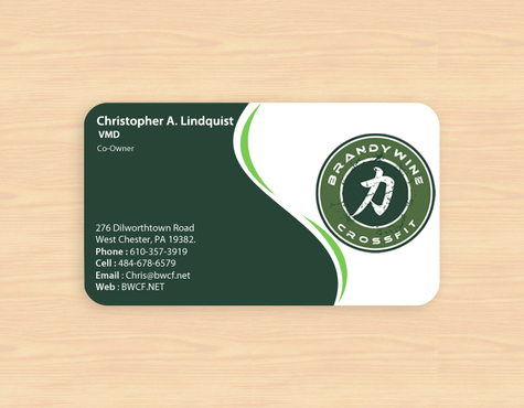 One side of the card should be the large Brandywine CrossFit logo and associated graphics. On the other side, should be my name and all the information about me and the business. If appropriate, use of another related logo could go here. We have the Russian Imperial Crest with BWCF over it or the Centered Strength logo from the center of the Brandywine CrossFit logo. Remember that Centered Strength and Brandywine CrossFit are about anciet wisdom and modern truth.