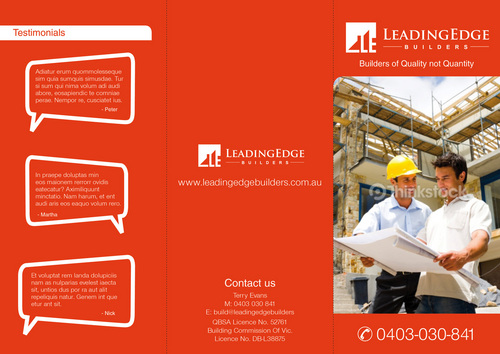 Uploaded logo to be used. To be able to substitute photos as required Include testimonials etc Trifold would probably look better, though am open for suggestions
