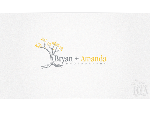 We want our logo to be simple but fun like us. We have a modern vintage look to our photographs. We shoot on location so we want to have a tree in the design. Probably not flowers for leaves or birds and other objects in the design. We thought about having a B+A "carved" in the trunk with maybe a heart around it. We'd probably want the leaves simpler if that's the case. We want the text to simply be Bryan + Amanda and are unsure about uppercase first letters or all lowercase depending on the font.