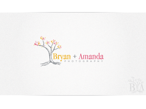 We want our logo to be simple but fun like us. We have a modern vintage look to our photographs. We shoot on location so we want to have a tree in the design. Probably not flowers for leaves or birds and other objects in the design. We thought about having a B+A "carved" in the trunk with maybe a heart around it. We'd probably want the leaves simpler if that's the case. We want the text to simply be Bryan + Amanda and are unsure about uppercase first letters or all lowercase depending on the font.