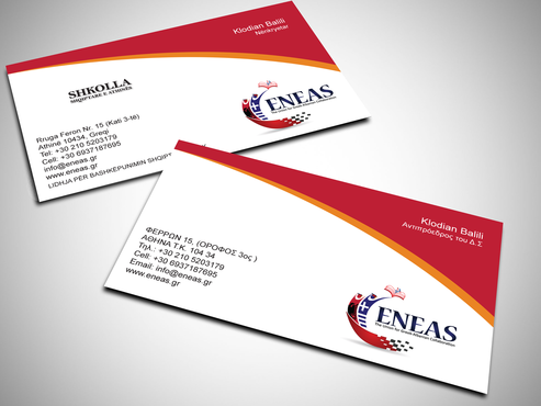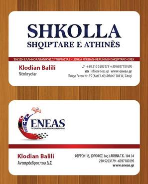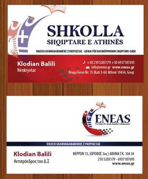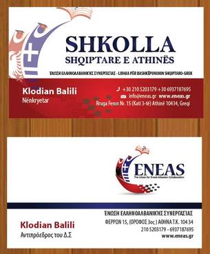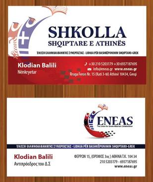 The card will be double sided, one part in Greek Language (just take the text copy/paste) and the other side identical in Albanian (the only difference here is that we will add another icon and coresponding text "Shkolla Shqiptare E Athinës")