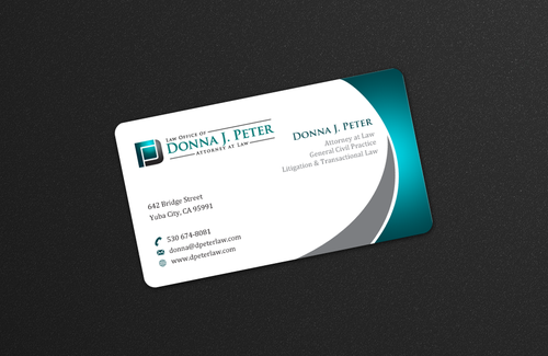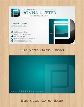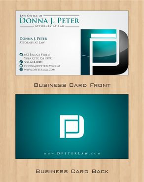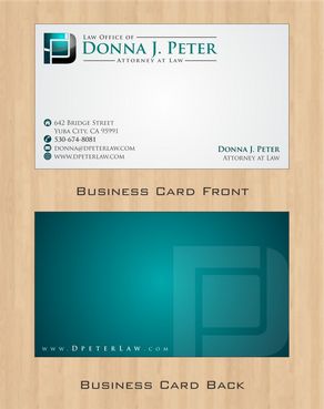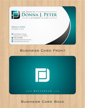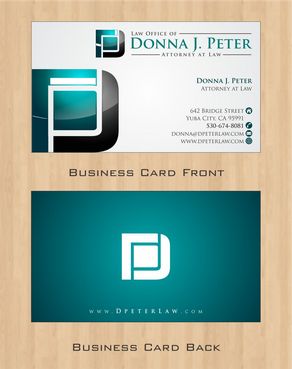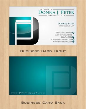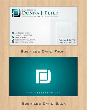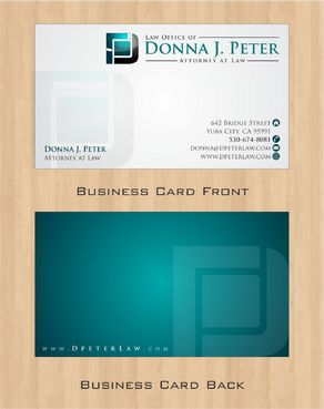 I would like just my logo on the front of the card. On the back I would like "Donna J. Peter, J.D." I would also like it to say "General Civil Practice" and "Litigation and Transactional Law" I would like my telephone number in bold, very easy to find and read. I would like my address, webpage, and e mail address included.