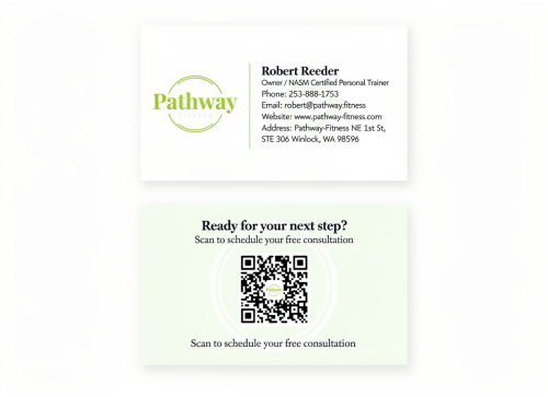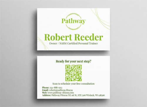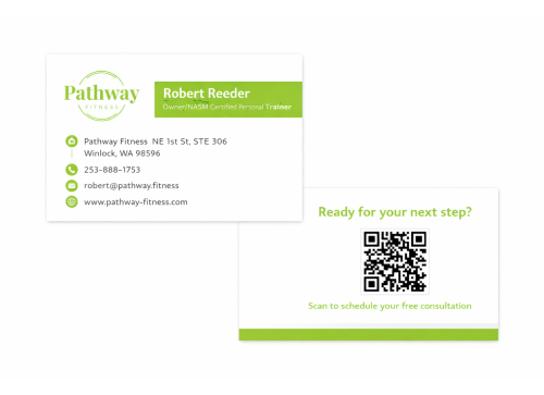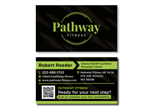The actual business email is "robert@pathway.fitness" please use this email for the business card. The zillion designs email validator sems to be outdated and does not recognize .fitness as valid even though it is.