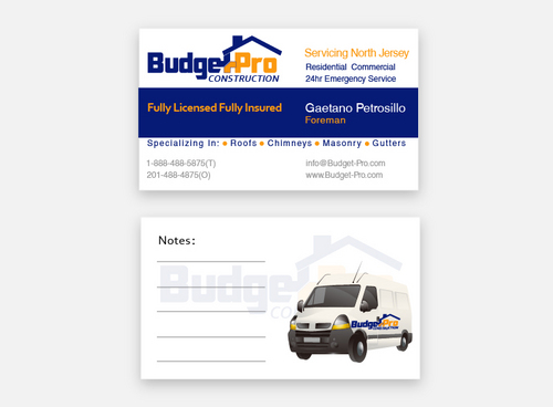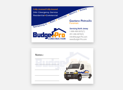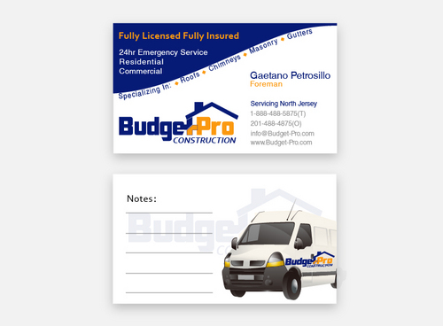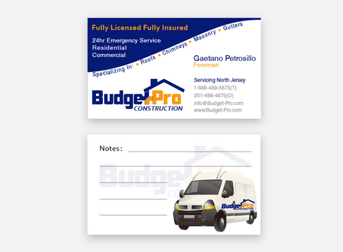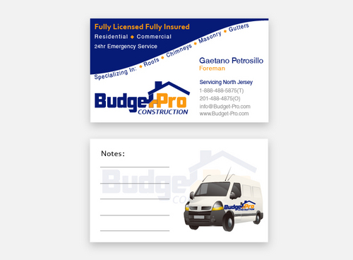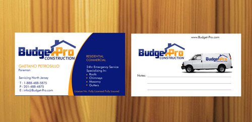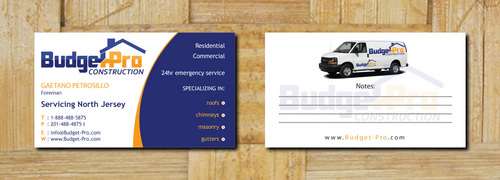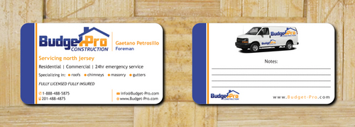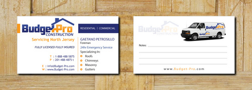 business card for BudgetPro Construction