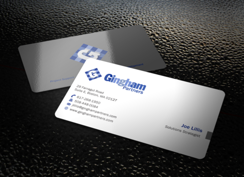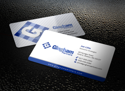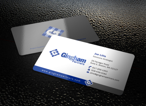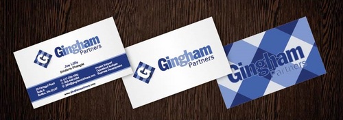 Would like a blue gingham pattern on entire back using the same colors as in the logo. Layout guidelines: I will be using Moo to print the cards. If there are any questions about layout for bleed etc, they can be found at link below: http://us.moo.com/help/faq/templates-and-guidelines.html Final, trimmed size 3.30" x 2.16" 84mm x 55mm Full bleed size (recommended for creating finished artwork) 1039 x 697 pixels (300dpi) 3.46" x 2.32" (300dpi) 88mm x 59mm (300dpi)