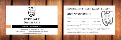 On the card either at the bottom or the top I would like it to say "Implants Family Dentistry Cosmetic Dentistry" to tell people what i offer, or as a motto
