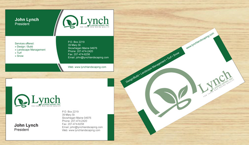 As a possibility it might be nice to incorporated the service we offer on the card they are Design / Build, Landscape Management, Turf and Snow. If this doesn't make the card not a big deal.