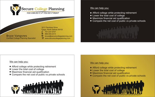 You all are doing a great job. I am wondering if it is possible on the backside of the card to have a light silhoutte effect of college students standing side by side with arms up or tossing caps and have the bullet points superimposed over that light silhoute like in design #8. I have seen a graphic like this somewhere. Again, leave (underline or emphasize the word net) off the card, that was instruction only.