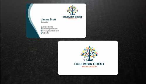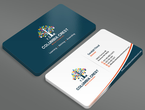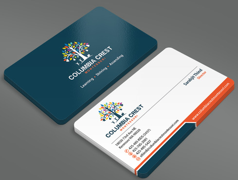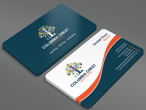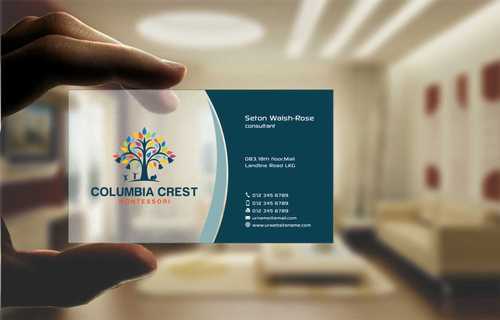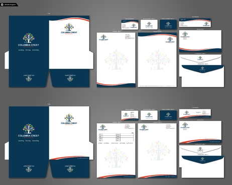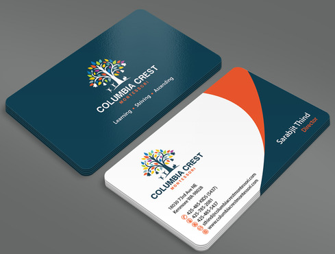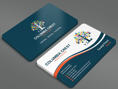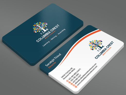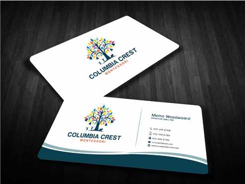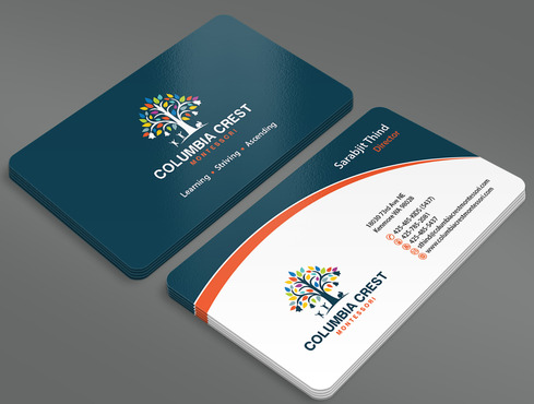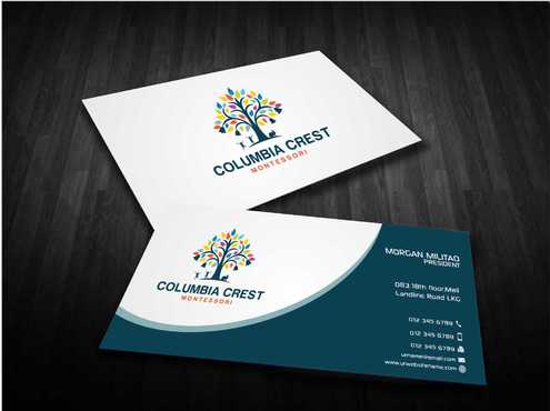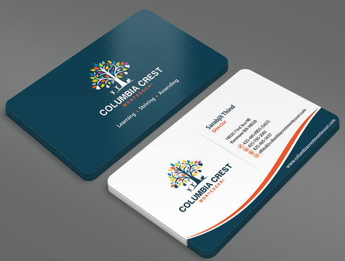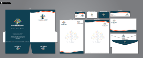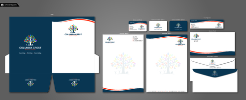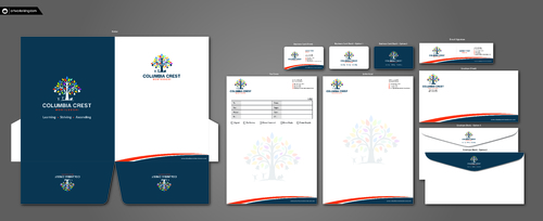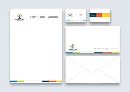 Need design for a good business card and stationary including letter heads and envelopes. Letter head should not have cell phone no. and email address should be info@columbiacrestmontessori.com.