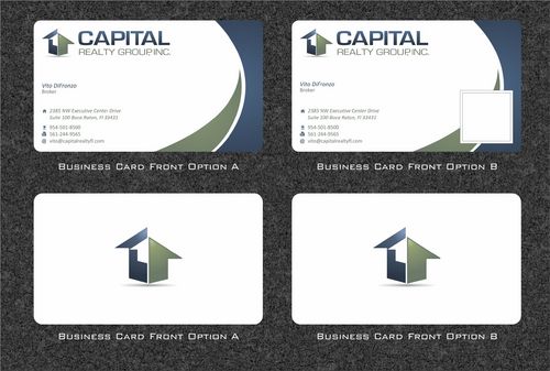 We prefer the use of icons, as opposed to wording for phone, fax, email. I will need 2 options for each submission. The second option should allow for a picture to be inserted on the business card. *Upon completion the winning designer will need to send a 2nd set of files, for another agent in the office. - Name, title, contact info to follow upon conclusion of Contest.