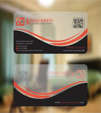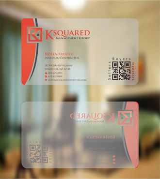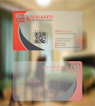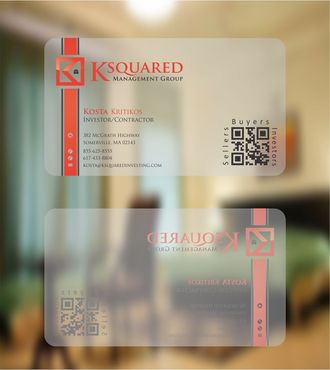 i would like to have a clear or frosted plastic card.I would like to add QR Code, around the QR Code i will like to have the words "buyers", "sellers", "investors" in a small text around the QR Code box. Also I would like the QR Code on the right side with contact info on left side
