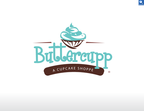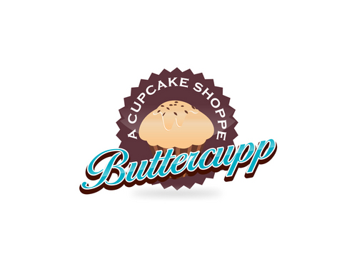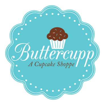 1) may be a cupcake paper cup from the top view. So, it looks like a circle with curvy edges. This to be included somewhere with the Buttercupp name or around it may be... This is just 1 option...