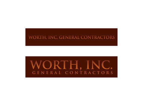 We met this evening and have considered not using a logo and going with a framed "Worth, Inc. General Contractors". We like the font used in #23 and #12. The frame can be simple or intricate (think crown molding). Please submit some examples along these lines. This may give us a more timeless look. We want this to be recognizable, but we're unsure about the "emblem". Our name could be the "logo". Think Tiffany's or Gap, etc.
