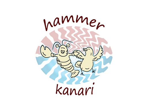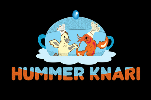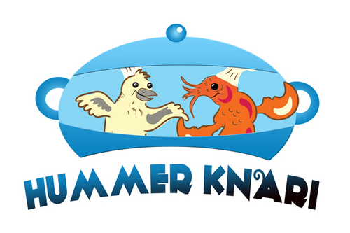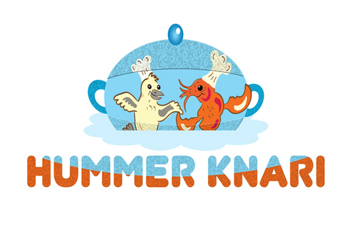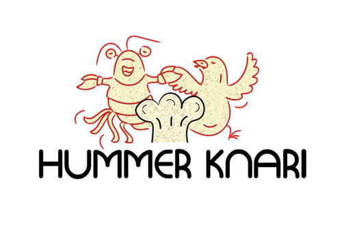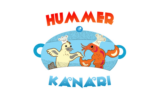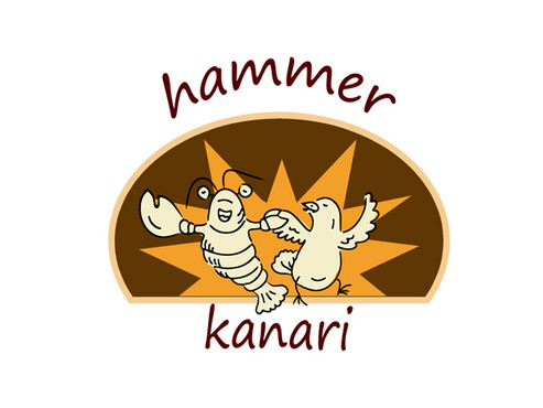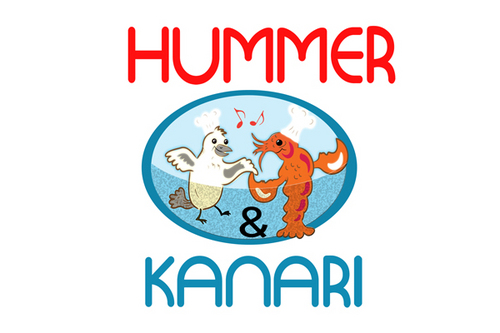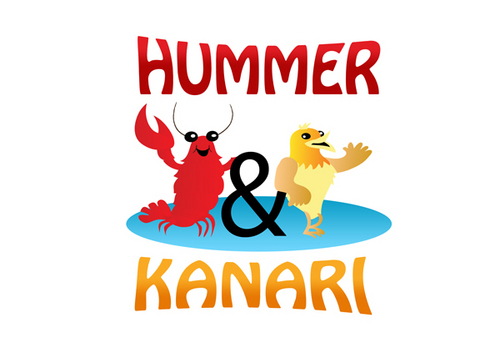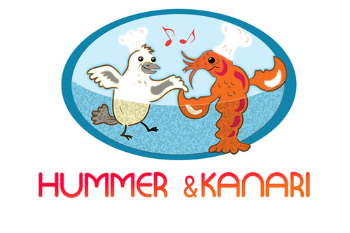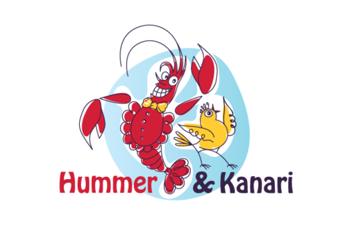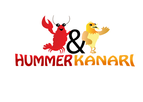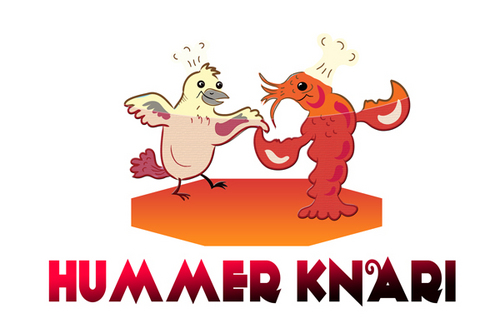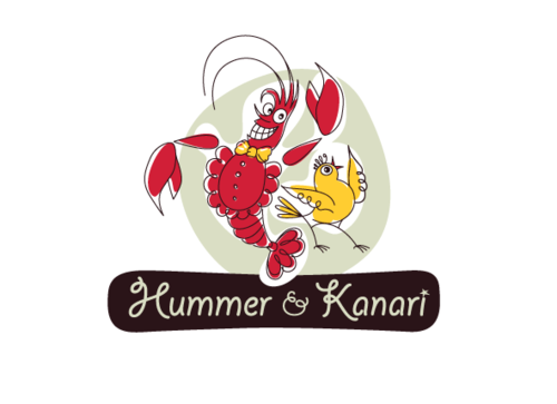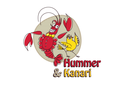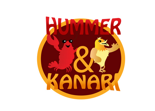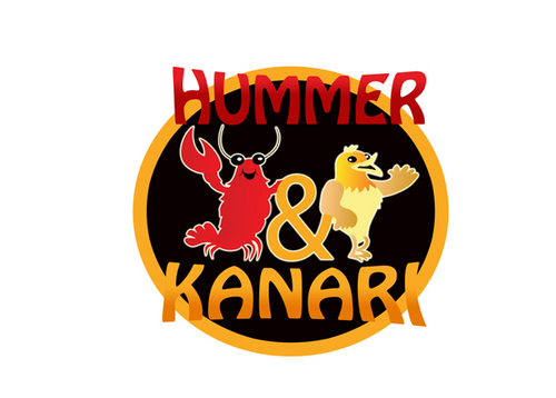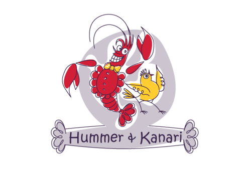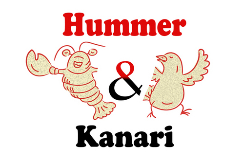 To play off the the lobster and canary bird together, Hummer Knari could be stacked on top of each other and the images above the text.