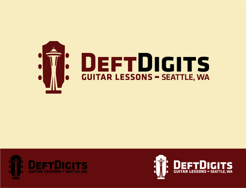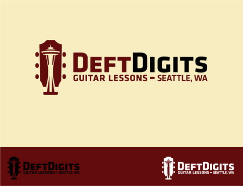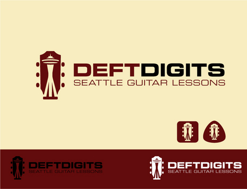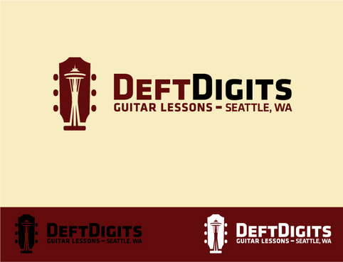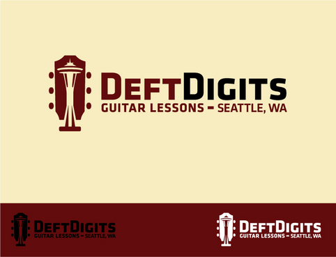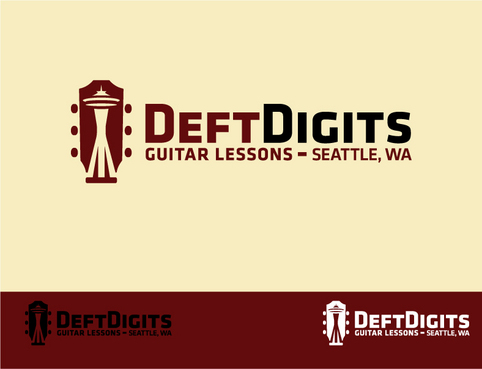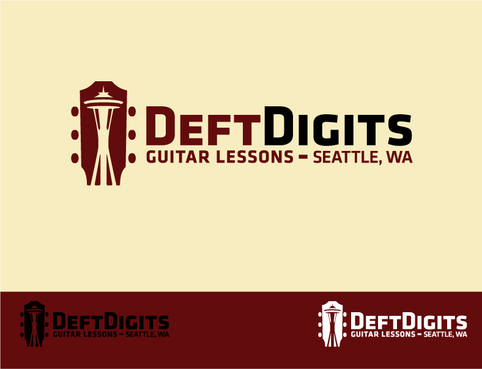 I'd like my logo to have "Deft Digits" as the main stylized font, and "Guitar Lessons" less emphasized. (Depending on the design, I might ask to see "Seattle Guitar Lessons" instead.) I'd like to have a symbolic aspect that alludes to the guitar and/or Seattle. The standard iconic image of Seattle is the Space Needle. Here's a messy example of a logo that incorporates both: http://www.seattleslackkeyfestival.com/archives/assets/images/Seattle_SlackKey-LOGO.jpg. I realize it might be impossible to use a Space Needle rendering while keeping it simple and clean. Simplicity is more important, as is the guitar element. But if you can come up with a tasteful, simple symbol that says "Seattle" and "guitar," I will do a back flip.