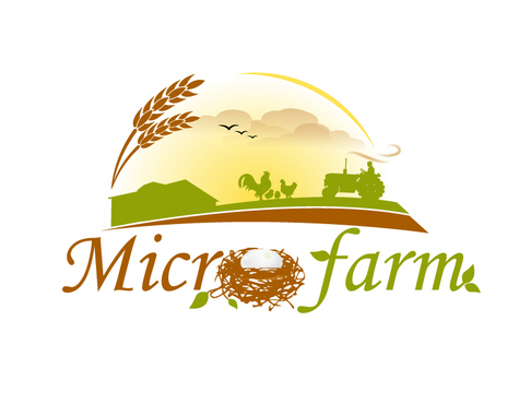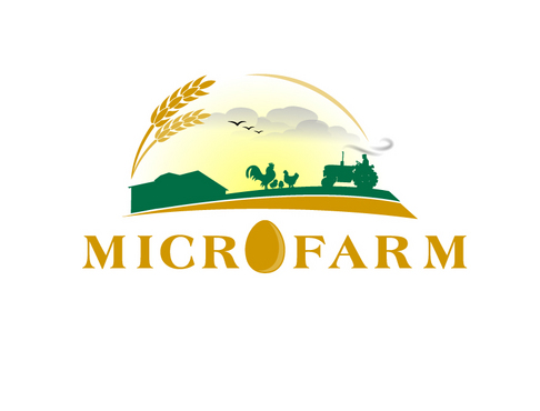 The logo is for a small farming company called microfarm, the idea is that the farm is the point of sale and that the customer can control the natural production process by him/herself. The Animals (Chickens) are treated well and the products (eggs) are of highest quality an environmental - friendly produced without long transports and WITHOUT intensive animal husbandry and at least with low Co2 emissions.