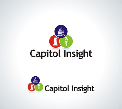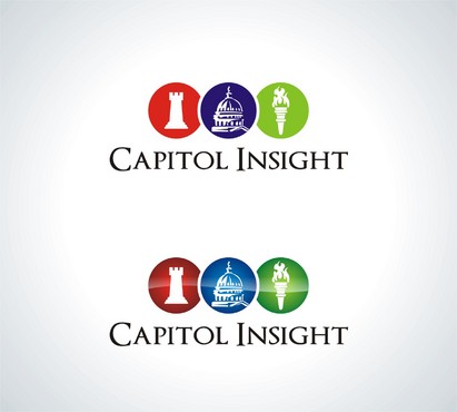 A third though is placing a circle or circular image behind (perhaps to one side) of the text "Capitol Insight" with the circular image having a quality that communicates above values or feeling.
