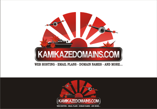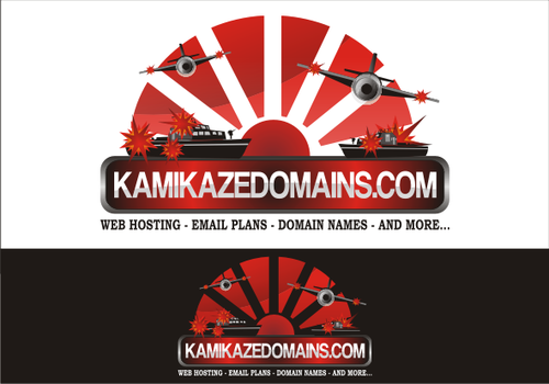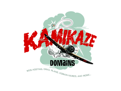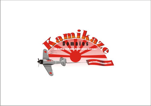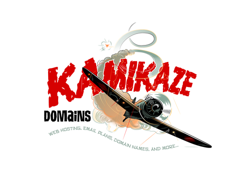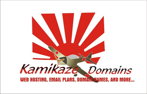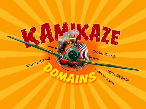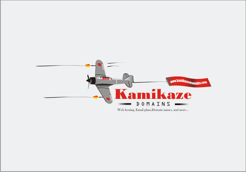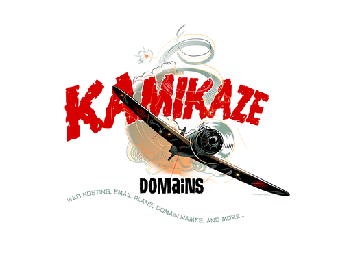 Cartoon of Japanese Zero plane with funny Kamikaze pilot attacking an Aircraft carrier that has (http://www.kamikazedomains.com) on the deck. Or the same Japanse Zero plane with funny Kamikaze pilot pulling a banner behind the plane with (http://www.kamikazedomains.com)