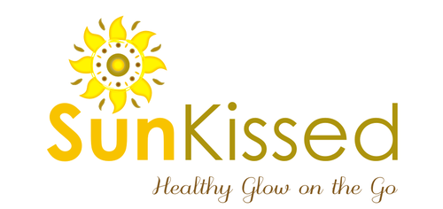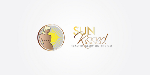 Sun-Kissed is a mobile air brush spray tan business. What I am looking for is a sun to the left side of the word sun. I would like one of the rays from the sun to be the dash between the word Sun and Kissed. I would like the colors used to be a glittery bronze and gold scheme.