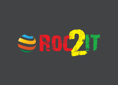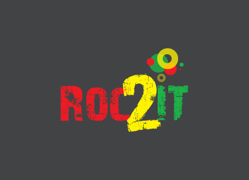 Logo is for a new website called ROC2IT.com, which promotes travel to the Caribbean surrounding driven by cultural events. ROC2IT stands for Riddim (Rhythm) of the Caribbean, we want people to Roc' to the riddims of the Caribbean. A big portion of the site is the sale of music online, mainly Reggae & Soca. Tagline doesn't need to be included, just used to give more of a feel.