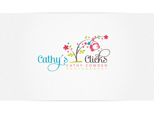 Cathy’s Clicks is the name of my photography company. I don’t think I want the word photography in the title since the word Clicks implies photography. But I’m not sure how to fit - Cathy Cowden Photography on the logo either, maybe put Cathy Cowden Photography on top and put Cathy’s Clicks on the bottom. I’ve been in the photography business for several years shooting high school seniors. Recently, after several request from my clients I began shooting children, family portraits, engagements, and weddings. My business is growing and I’m looking for a new logo that implies grace and elegance, nothing too frilly. My clients span all age groups and I would like to attract more high-end clientele. My current website is: www.cathysclicks.com