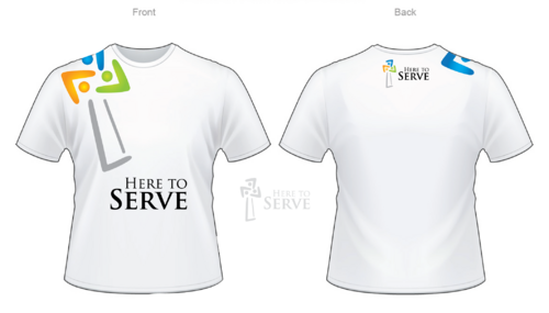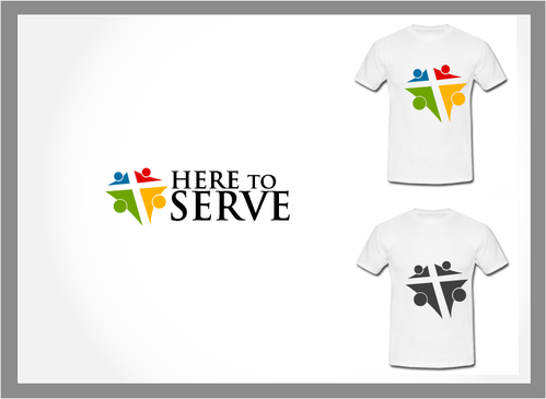 This is a logo for our serve team that will be for tshirts and banners when we do events. I want the word Serve to be across the chest and the "here to" small and somehow just above the word Serve.