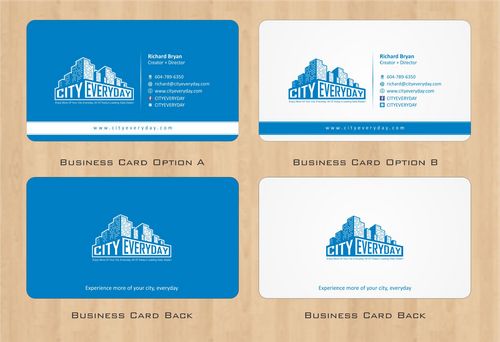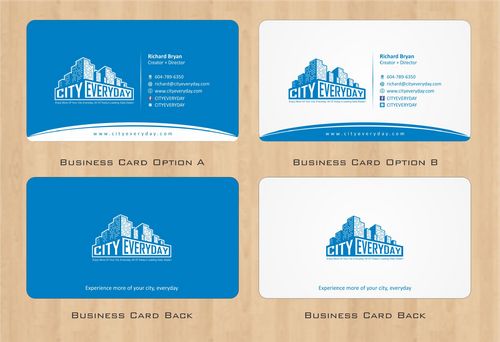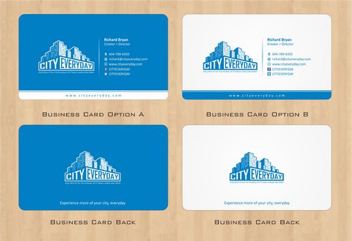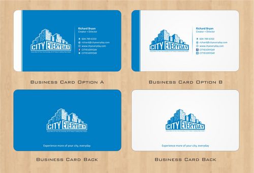 I am looking for a modern catchy design for a new set of business cards. Looking for stationery such as: email template - small logo with web link - Post card - Note pad etc... Looking for a modern design that contains the web link and text to match business card theme. Open to new ideas. Facebook and Twitter logo "CITYEVERYDAY" can be used on the cards too. I will make further comments as the various designs come in.