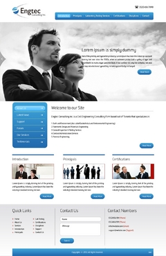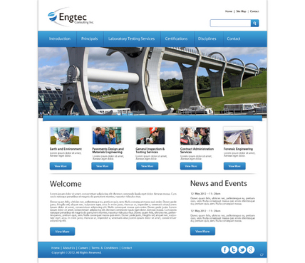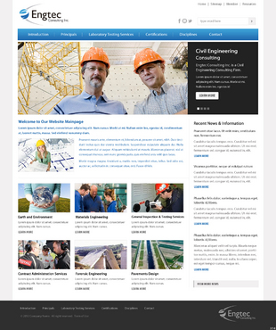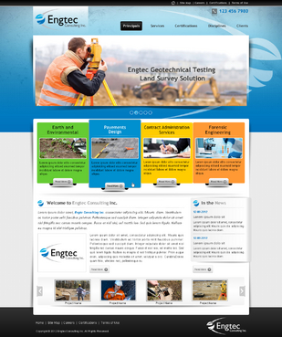 Engtec Consulting Inc. is a Civil Engineering Consulting Firm based out of Toronto that specializes in: 1. Earth and Environment (also called Geotechnical and Environmental Engineering); 2. Pavements Design and Materials Engineering 3. General Inspection & Testing Services 4. Contract Administration Services 5. Forensic Engineering This website should have the following sub-pages 1. Introduction to the Company 2. Principals 3. Laboratory Testing Services 4. Certifications 5. Disciplines (or areas of service) 6. Contact