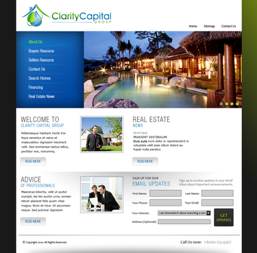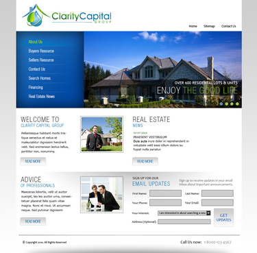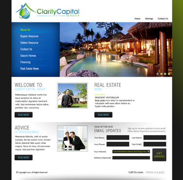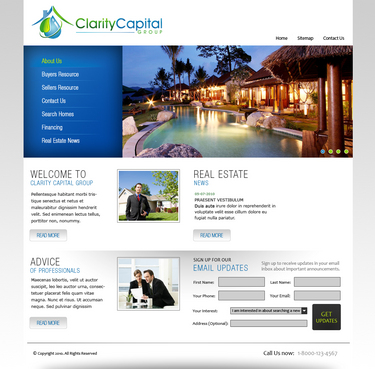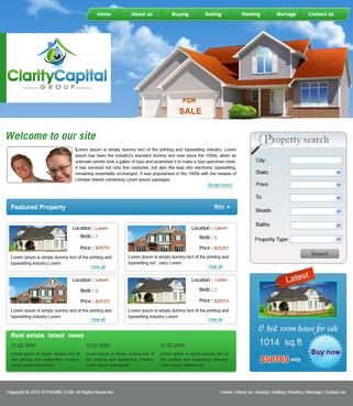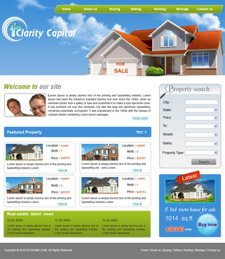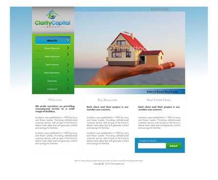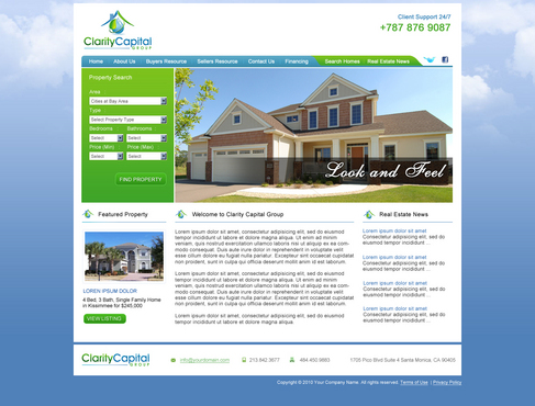 I like clean sites. But I also would love to see if someone could "flasherize" the logo. See the following: http://www.total-propertymaintenance.com/ Blues, greens, blacks and greys. Simple lines and navigation is very important. The site could be content intensive. Eventually I will have all the cities in the Bay Area summarized, (schools, restaurants, introduction paragraphs). We will have a lot of Buyer Resources, so I will have to make it navigable and intuitive. It should also be scalable.