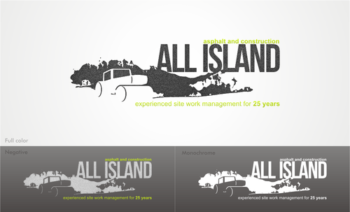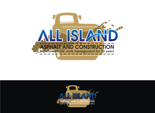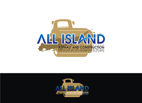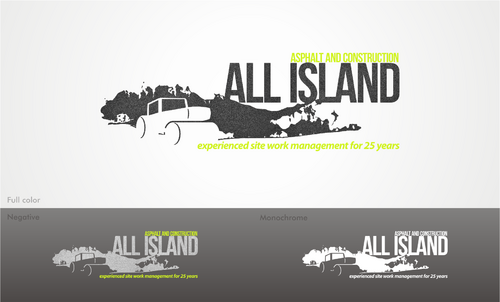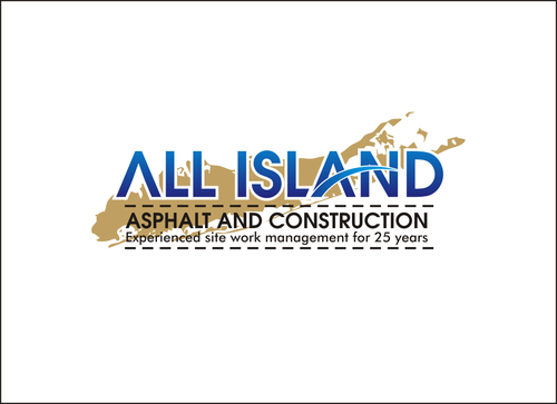 We would like the long island silohette to be part of the logo with All Island text being bigger fonts than the Asphalt and Contruction text. The primay business is asphalt paving but we also do all aspects of site work (demo, concrete, exterior commercial renovations, stone walls and pavers).