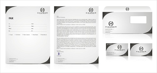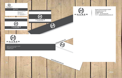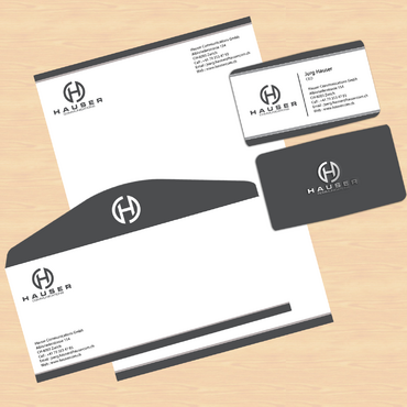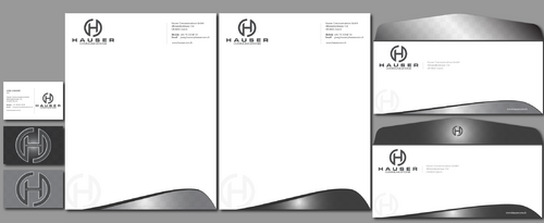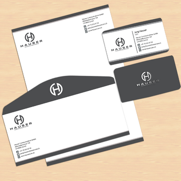 Hauser Communications is a consultancy that specializes in all aspects of high end event organization and sponsorship activation. We are located in Switzerland. I'm looking for a clean and stylish look. The sizes are european: Letterhead: DIN A4 210mm x 297mm (8.27" x 11.69") Business Cards: 85mm x 54mm (3.346" x 2.126") Plz use "Mobile" instead of "Cell" Stationery: --------------- Do not use Ilustration which runs off the edge. We do print the letters with our own printers. Therefore, there will be a margin. And please no watermarks. Business Cards: ----------------------- I consider to grade up the back of the card with some varnish or film, but not sure yet. You can use either the black or the white logo. ppt Template: ------------------ Template should match the grafical concept.