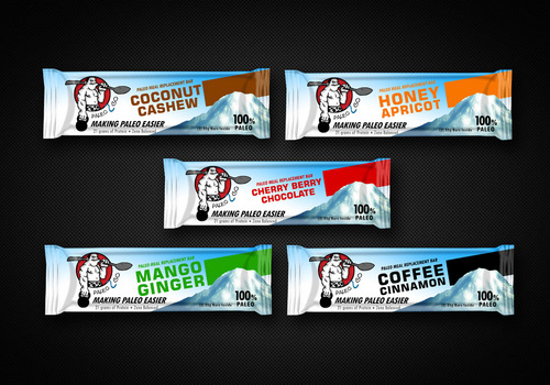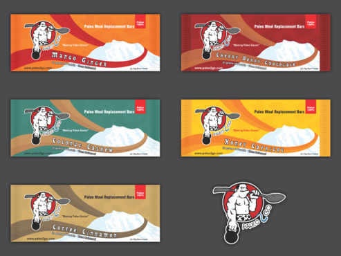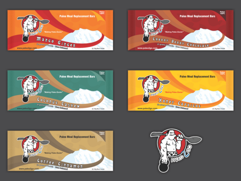 Protein Bar Requirements: Our 5 protein bar flavors are: 1. Coconut Cashew 2. Mango Ginger 3. Honey Apricot 4. Cherry Berry Chocoloate 5. Coffee Cinnamon Protein Powder Tubs - 1. Vanilla Paleo Powder 2. Chocolate Paleo Powder 3. Strawberry Banana Paleo Powder Image: Our only requirement design wise is that we'd like for an image of Mt Ranier to be incorporated to reflect our local heritage. As you'll see from the sketch, we have Mt. Ranier in the top right, our logo in the top left, and a landscape in the foreground. We would like the different flavors to be reflected in the colors of the font and not images of the ingredients so we can keep our printing costs low. We are open to new designs, so please feel free to submit away!