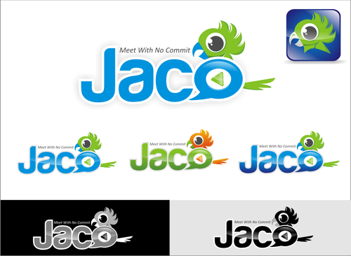 The name of the application is Jaco (like the parrot), and we prefer to integrate the parrot character in the logo (or at least its beak, or some recognizable part of it).