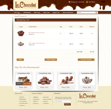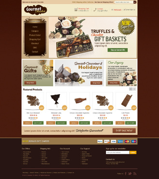 1) The following pages need to be designed Homepage Category Page Product Detail Page Shopping Cart Page Checkout Page CMS page 2) Website has only these categories Gift Boxes Gift Baskets Gift Treys Dairy Free Sugar Free Bulk Confections