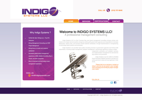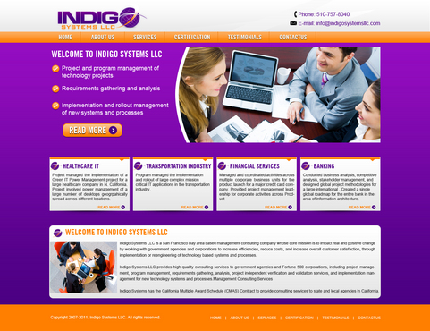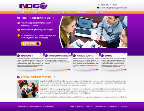 Indigo Systems is a management consulting company located in the San Francisco Bay area that provides information technology consulting services to corporate clients including IT project management, program management, and full lifecycle implementation management of technoogy systems and processes