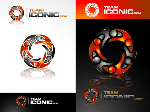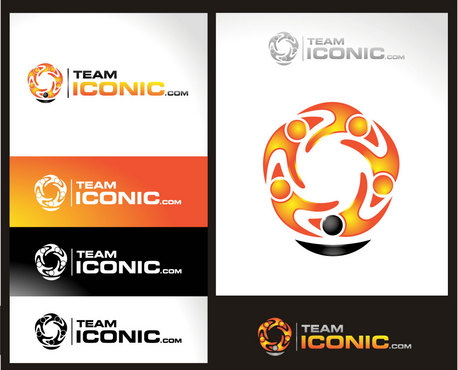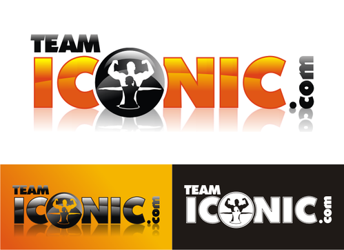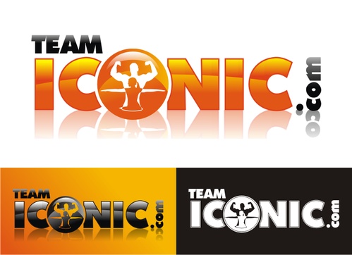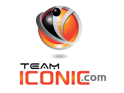 We would like the design to be more horizontal than vertical. I really want to "ICONIC" to pop out. "ICONIC" has be a different color (orange) and sized bigger than "team" or ".com", but try to not make it seem unporportional.