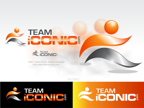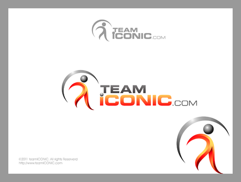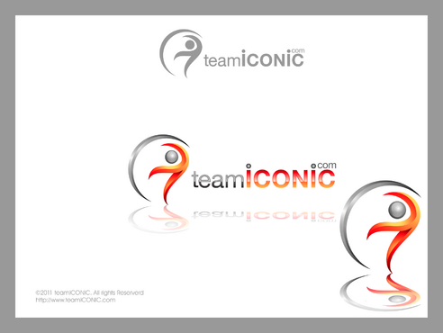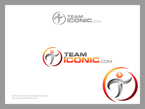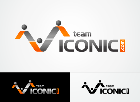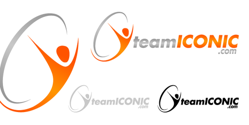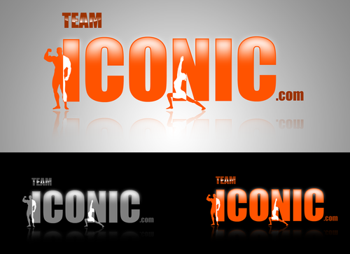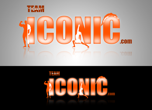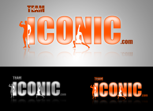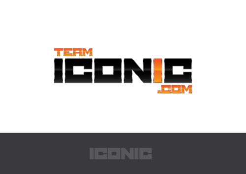 We would like the design to be more horizontal than vertical. I really want to "ICONIC" to pop out. "ICONIC" has be a different color (orange) and sized bigger than "team" or ".com", but try to not make it seem unporportional.