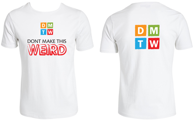 This design is a logo for a tee shirt company called Dont Make This Weird. We are not looking for tee shirt design, but a logo to represent our company. The logo can be a symbol, drawing of face or animal, or pretty much anything that looks cool and a little funny. The logo should also contain the initials DMTW. Creativity is encouraged, so dont be shy to make something funny and off the wall. Nothing offensive or trashy.
